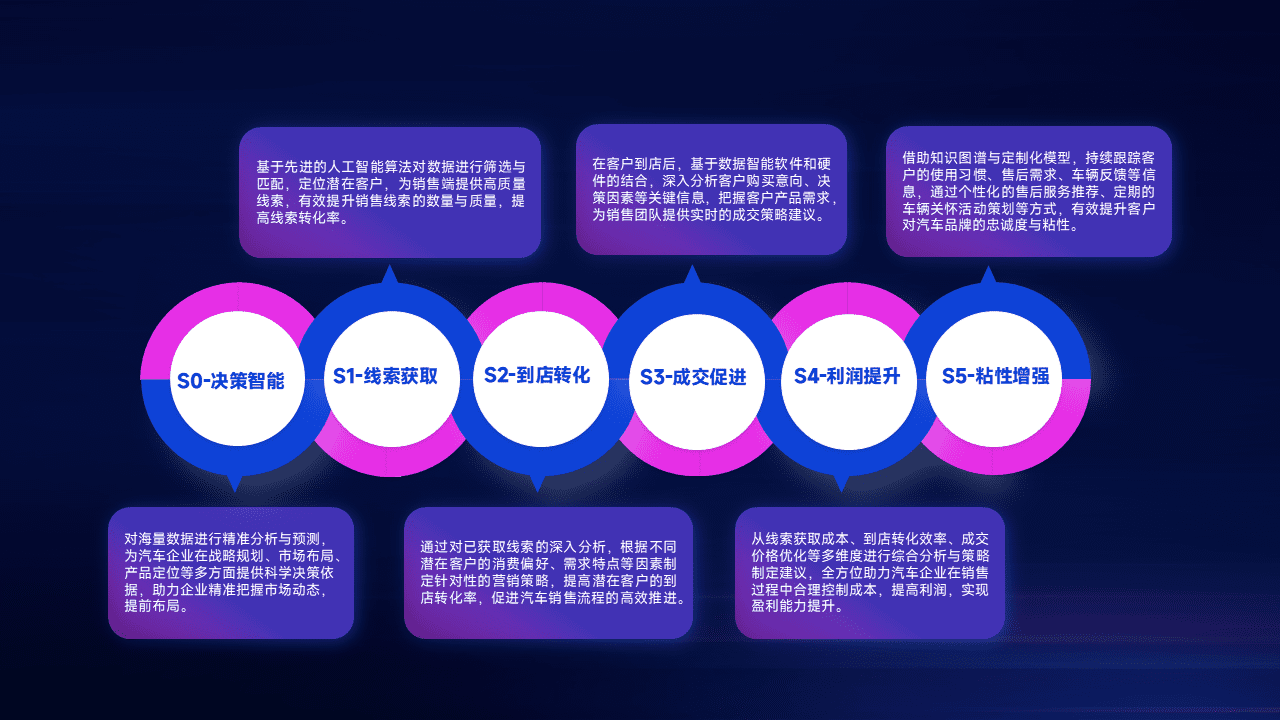 通过拓宽潜在客户来源、、优化线索分配并提高到店转化率,,以增强销售效率。。同时,,,利用线索数据不断优化分析模型,,,,有效提升转化率,,,扩大营销影响力。。